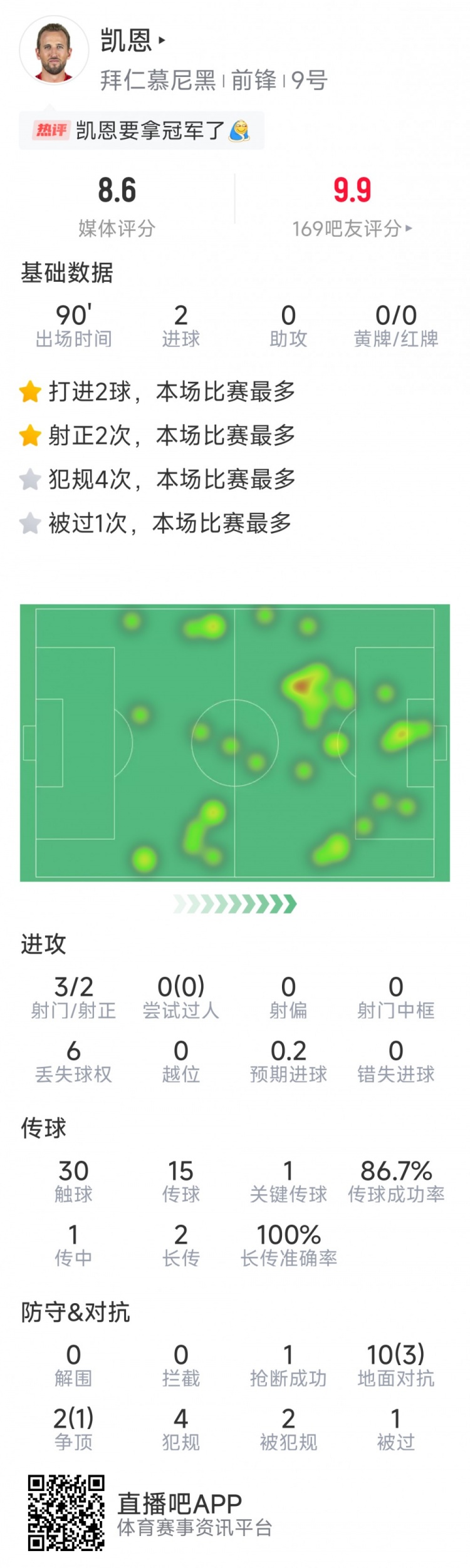 发布时间:2025年03月06日 08:04点击:栏目:足球新闻 3月6日讯 在本轮欧冠拜仁3-0击败勒沃库森的比赛中,凯恩梅开二度。以下为他在本场数据:比赛时间90分钟2粒进球3次射门2次射正30次触球1次关键传球传球成功率86.7%1次抢断12次对抗4次成功评分8.6分 本文标签: 足球 德甲 拜仁慕尼黑 相关阅读: 库库雷利亚:我们要为赛季最后阶段努力,要赢得欧协联冠军 实打实的8000万!拉菲尼亚25球16助,金球奖赔率第3高于维尼修斯 卫报:英格兰、苏格兰、威尔士北爱尔兰将联合申办2035女足世界杯 斯基拉:尤文和一些英超俱乐部有意亚特兰大中场埃德森 三浦飒太:如果把握机会更强应该能攻破申花大门 回到主场要赢 A费:因黄牌缺席次回合令我伤心 相信球队能逆转巴萨 今已散作满天星⭐6年前的今天,阿贾克斯青年军4-1淘汰皇马进8强 费迪南德&麦克马纳曼称赞阿利森:他是利物浦本场比赛的英雄 日本前腰山田康太因骚扰队友妻子,被大阪钢巴舍弃 三级职业联赛球队分布:广东省8队最多,山东省6队第二江苏省第三